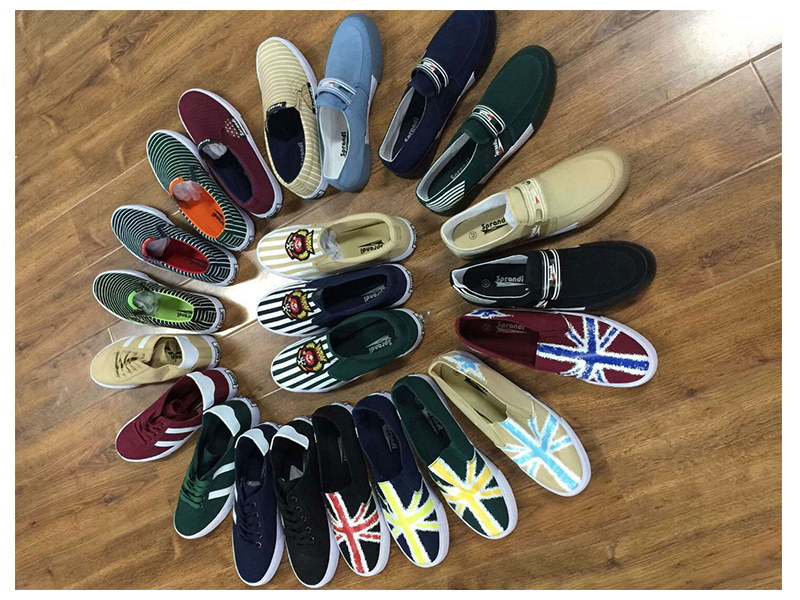 We supply complete equipments for the production of rubber sole canvas shoes.